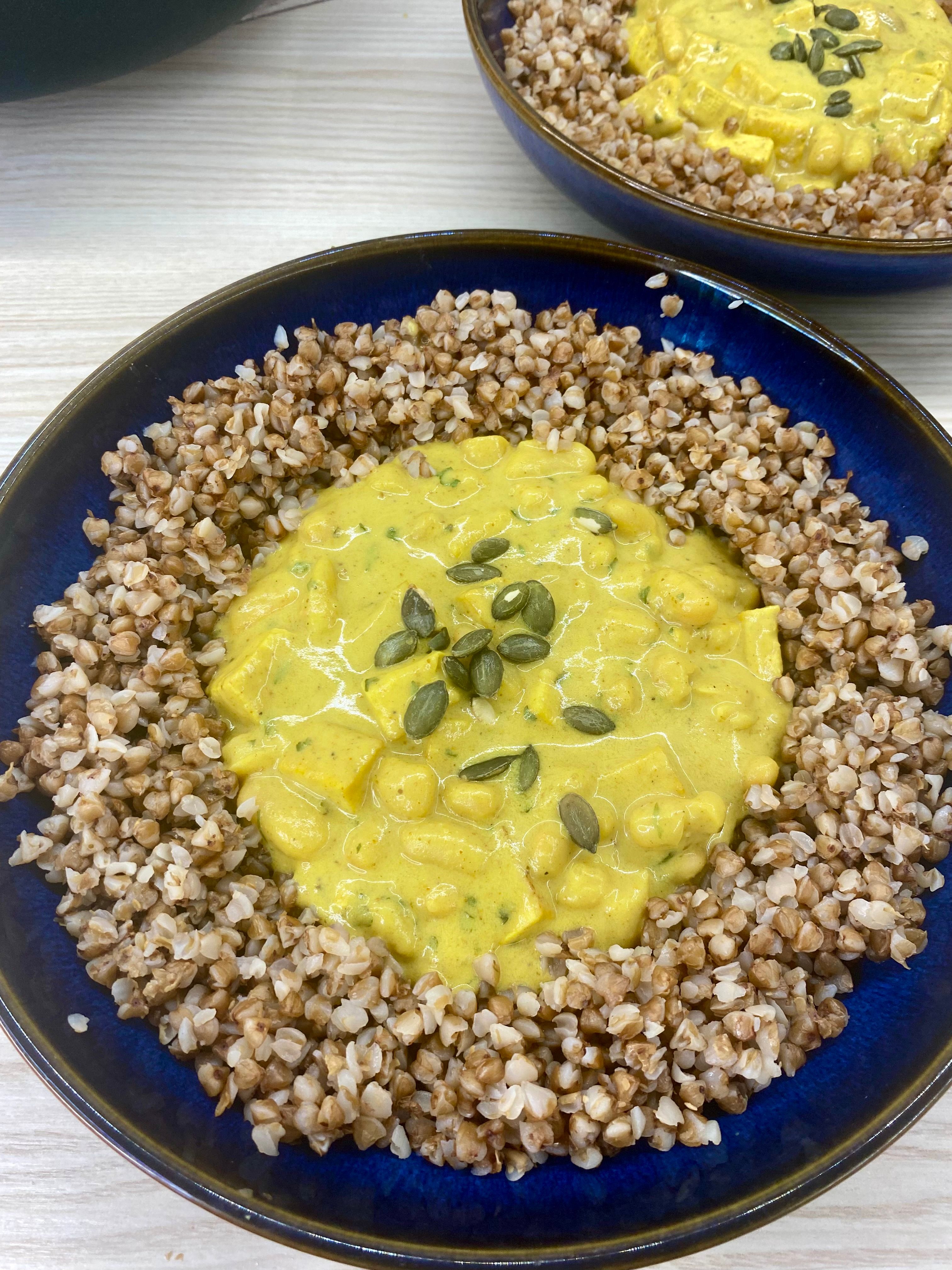 Pokud máš ráda koriandr, vmíchej ho do hotového kari. Podávej s rýží, pohankou nebo jinou oblíbenou přílohou.